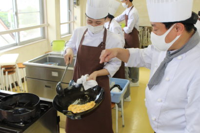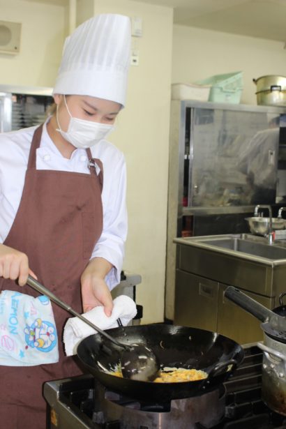 学生も上手に鍋が振れるようにと、毎回毎回、炒飯で特訓しています。