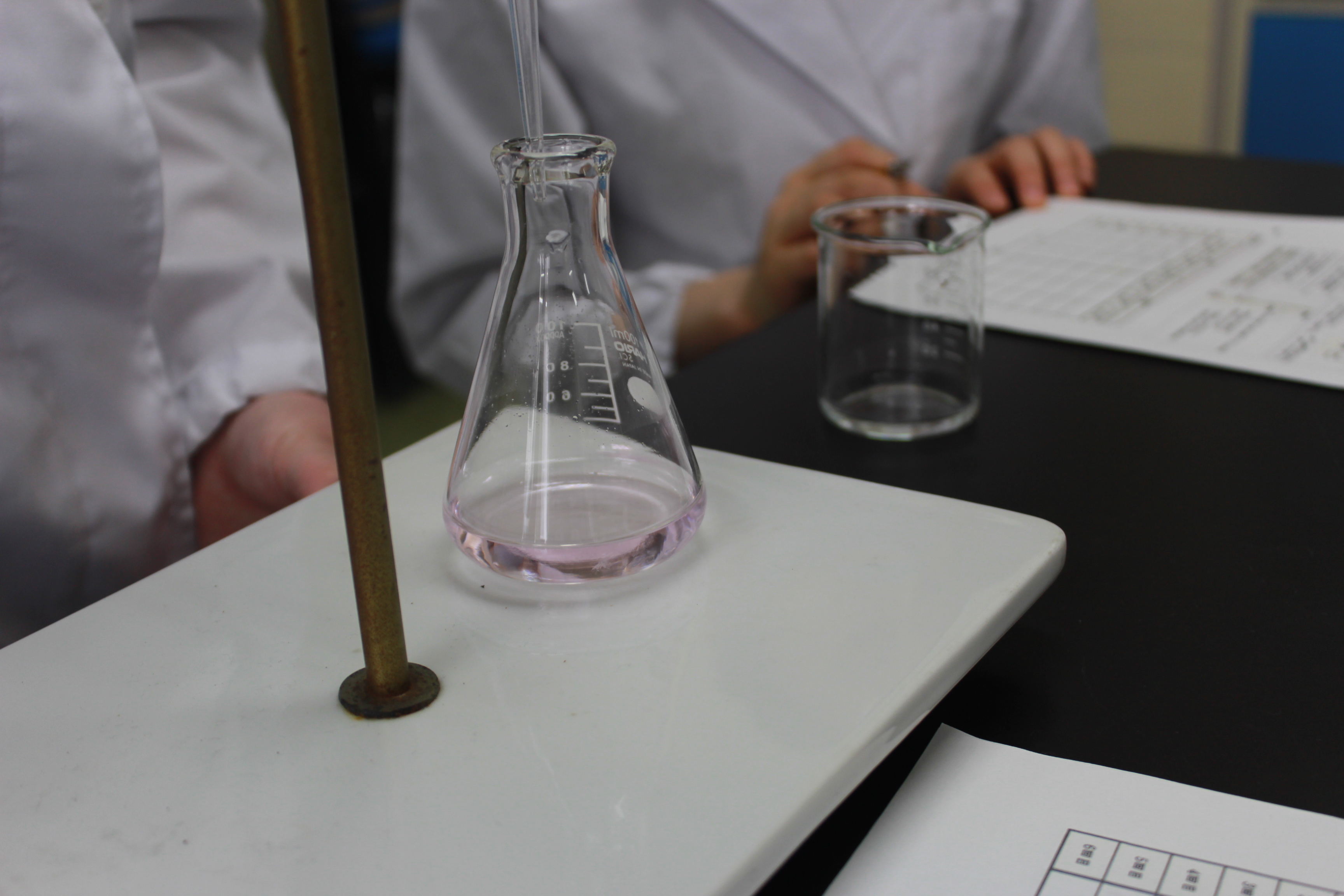 今回は食酢に含まれる酢酸の量を”滴定”という操作で算出しました。