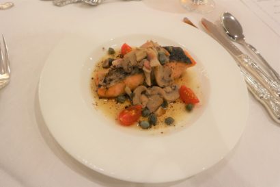 【サーモンムニエル ブールノアゼットソース】皮付きの魚は3種類の食べ方があります。①皮をはずして身だけを食べる②皮ごと切って食べる③皮をはずし、身を食べた後に皮を食べる