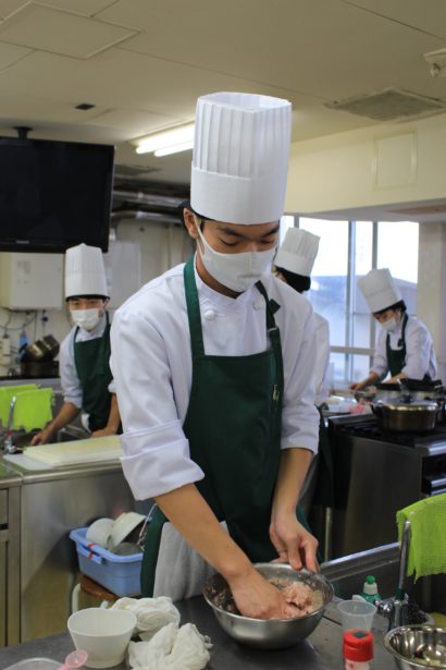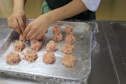 鶏ガラスープのゼリーをお肉にも混ぜてねり、