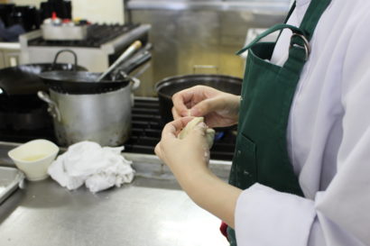 生地を引っ張りながら、ひだをつくり包むのは難しい!!