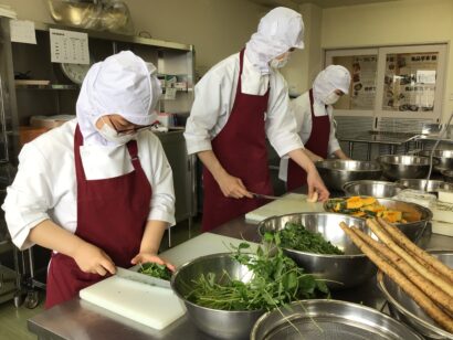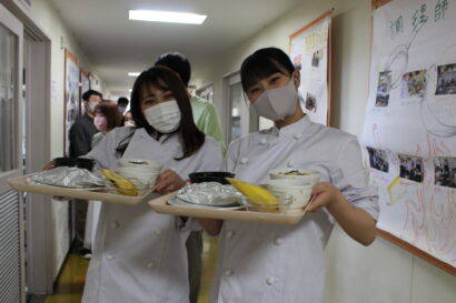 さて、先日栄養士科の校内給食実習が無事に終わりました。