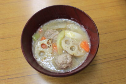 ・すりおろしたれんこんを入れることでとろみがつき冷めにくく、さらにすりおろし生姜で体がぽっかぽかに温まる。