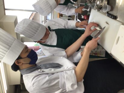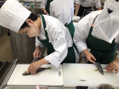 今日は鯵の「三枚おろし」を一生懸命練習する学生の様子をご紹介します!(^^)!