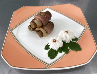 2日目に牛蒡と鴨の小袖焼き・菊花蕪甘酢漬け