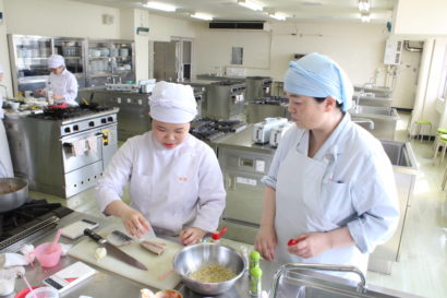 調理班は、給食実務論実習で学んだ「大量調理」の経験を活かし、安全でバランスのとれた美味しい給食を作ります!