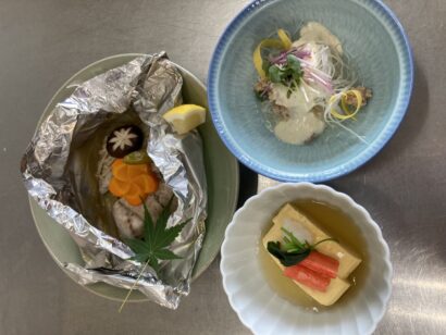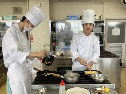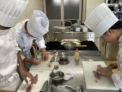 今日は調理専攻科2年生が日本料理の授業で校内コンクールの練習をふまえた