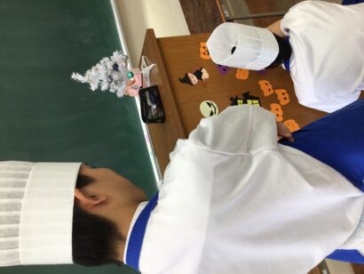調理専攻科2年生の教室を見てみると、飾り付けをしていました