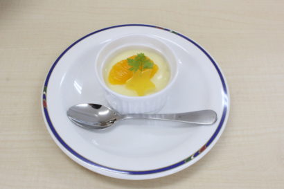 デザートは、オレンジババロア風デザートです。本日は七夕なので、星形のゼリーを添えました☆