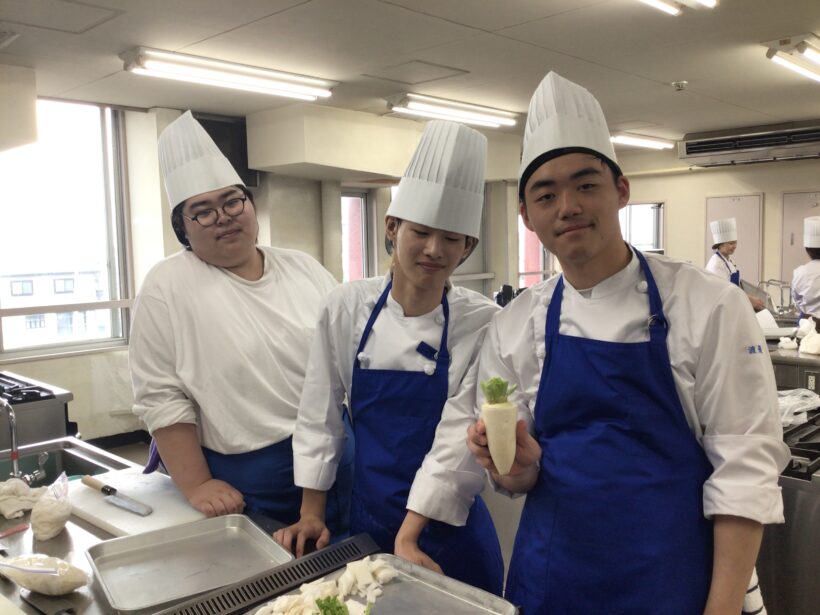 休み前には自前の包丁ケースを自宅に持ち帰り練習する学生の姿も多く見られます!