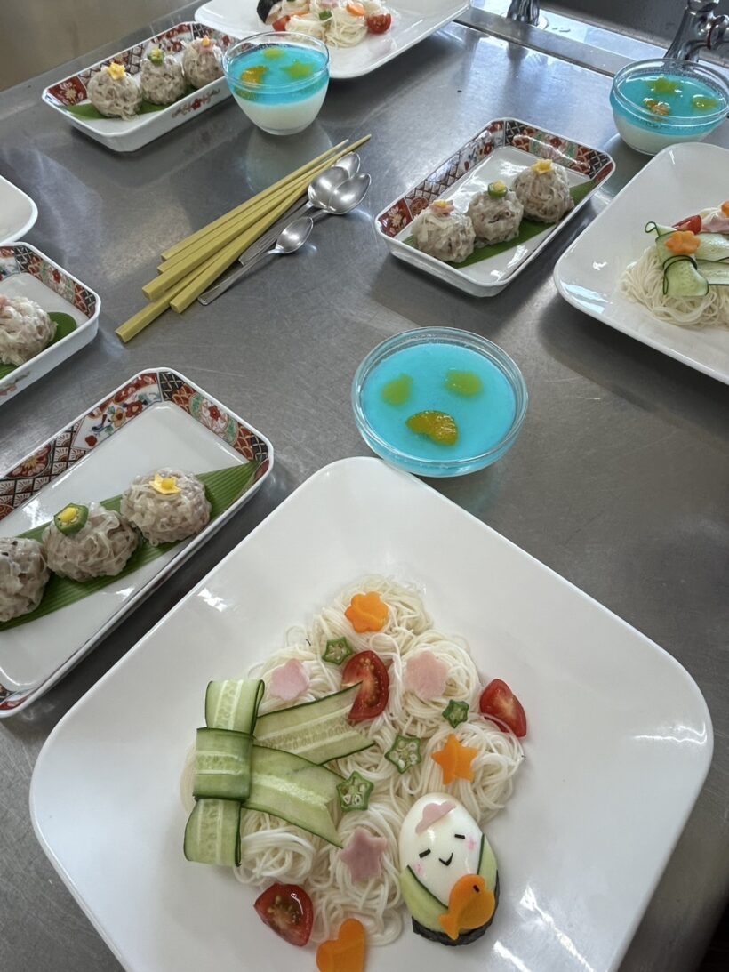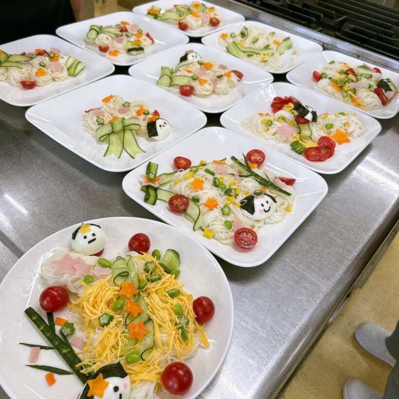 今年は食べやすいそうめんで七夕をイメージして盛り付けをしました。