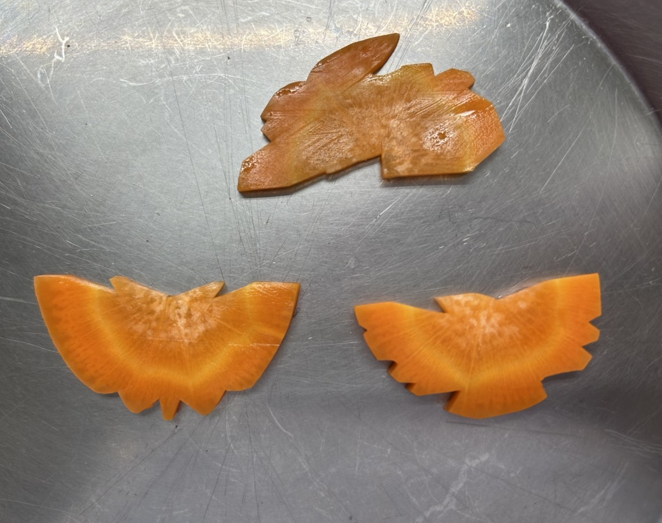 五目あんかけの具材の人参で鶏と兔と蝶を掘りました。