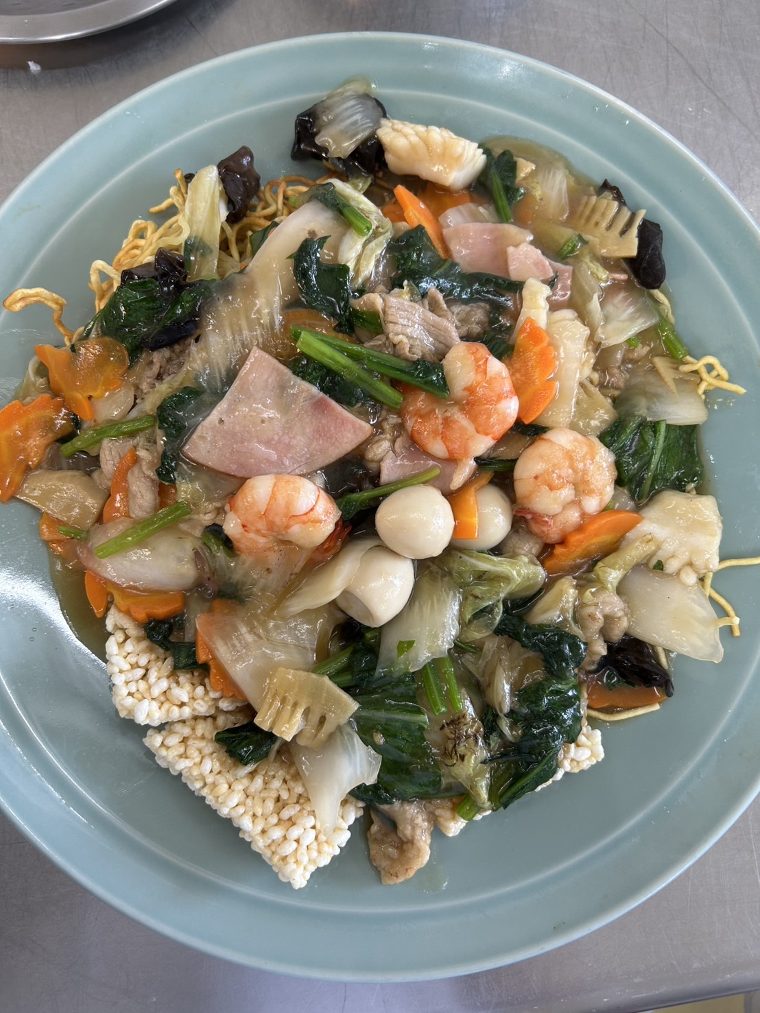 ●什錦炒麺、鍋巴(五目あんかけ焼きそば、おこげ添え)