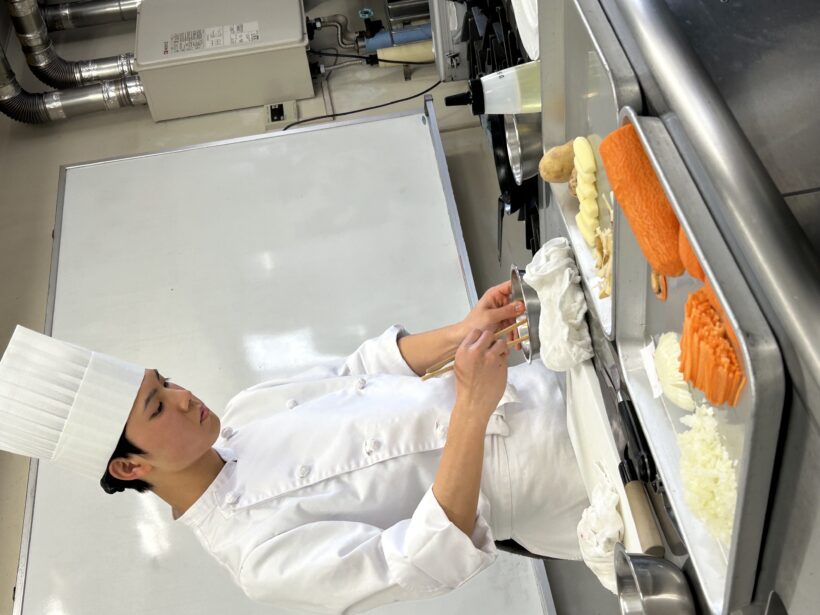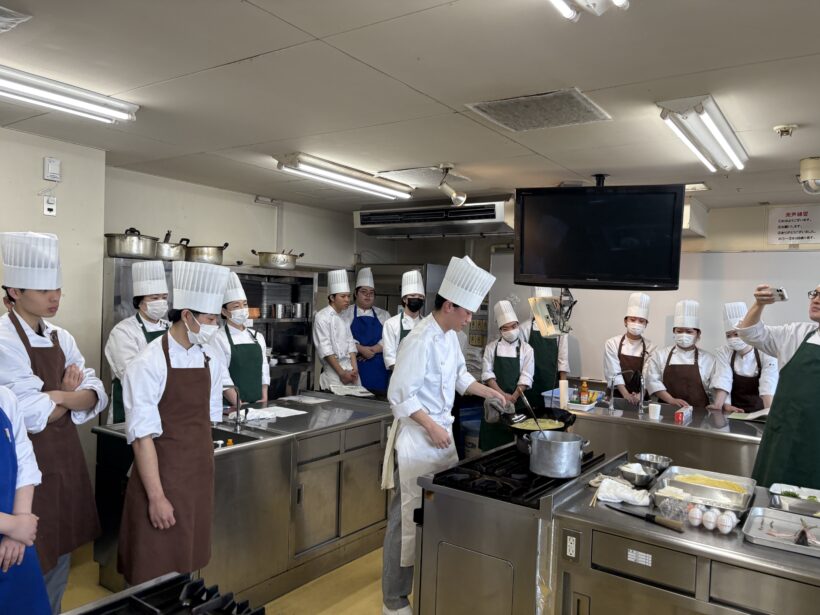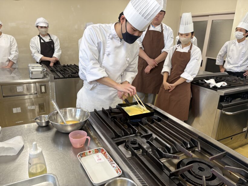 野菜を切り終わり鯵をさばき、これからオムレツに移ります