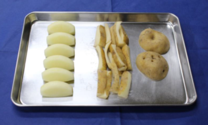 ペティナイフでジャガイモの皮を、卵の殻の側面を