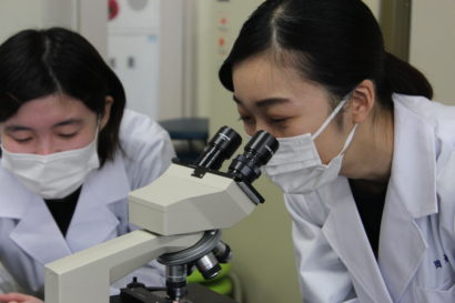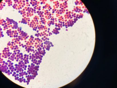 「生きてる酵母菌は青く見えて、死んでる酵母菌は赤く見えますよ!」